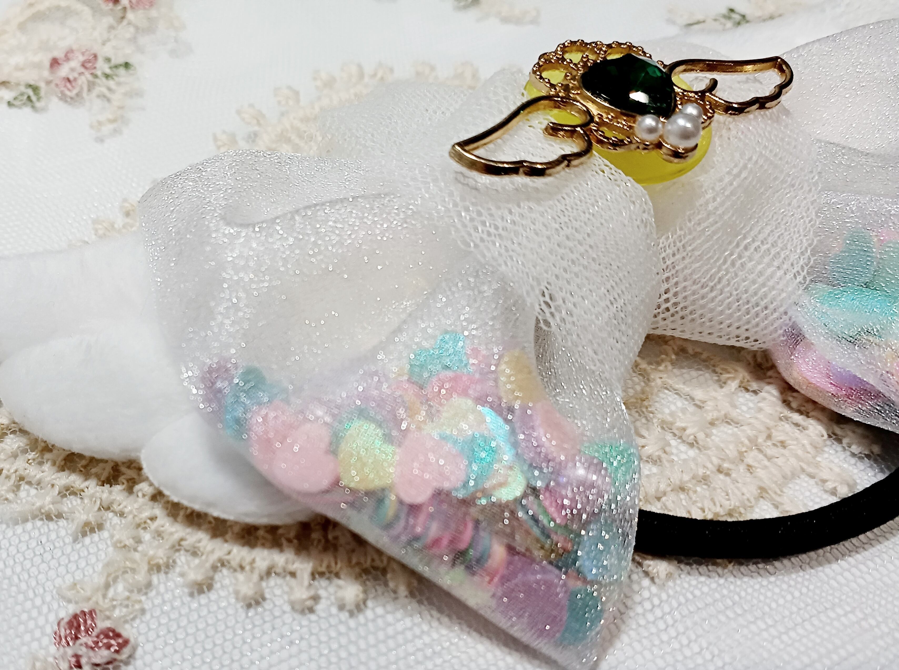 しゃかしゃか変身リボン《キラキラパーツ付きヘアゴム/オーガンジーリボン》原宿系✴︎ゆめかわ系